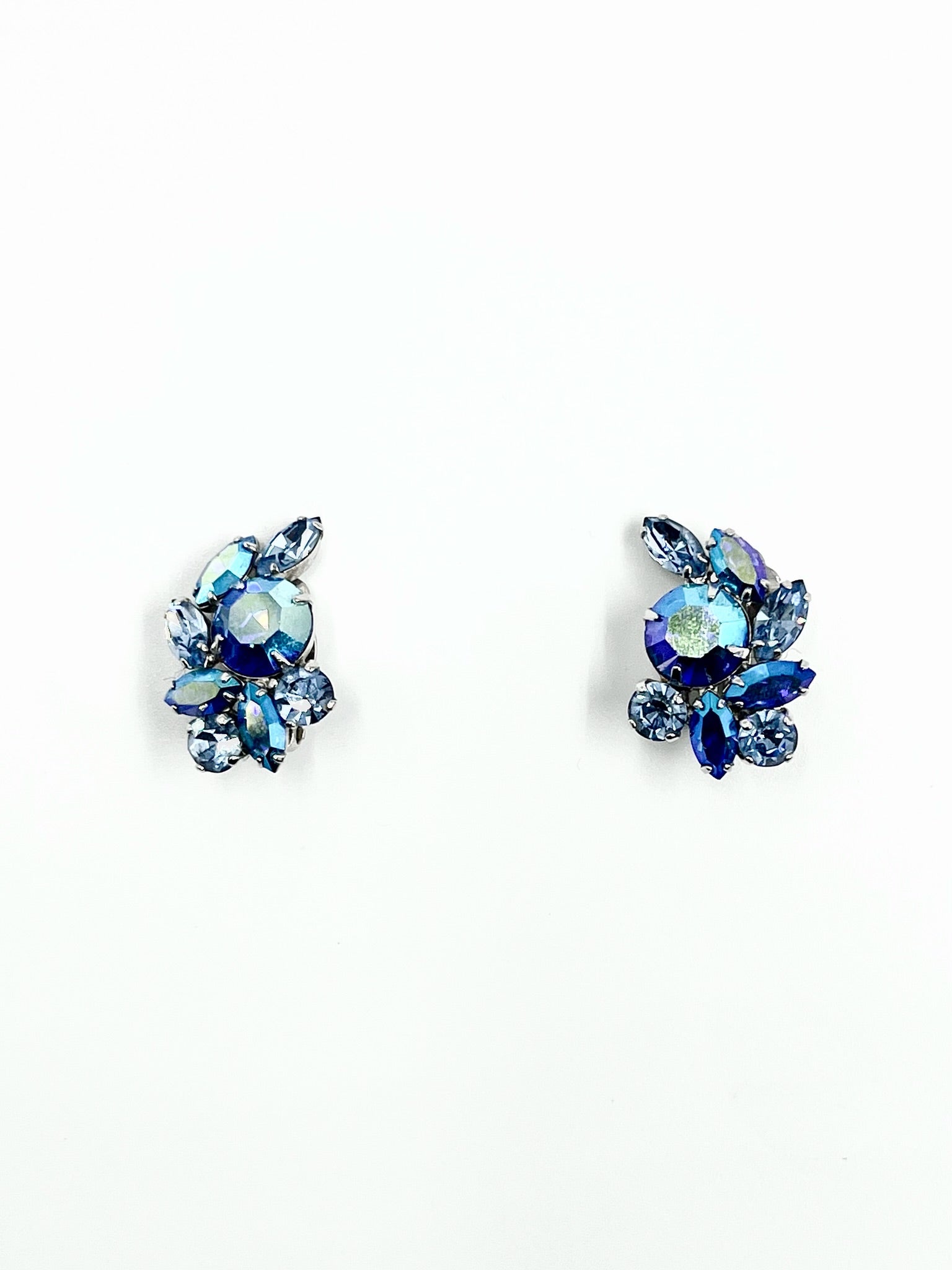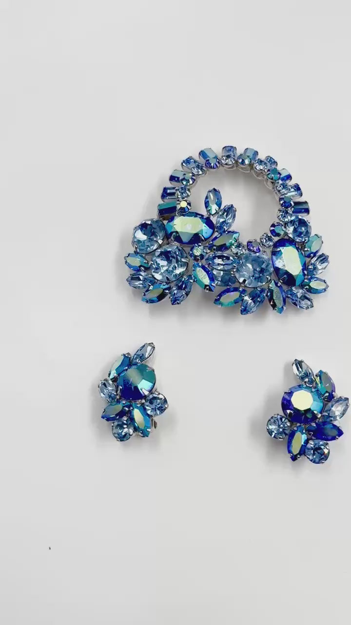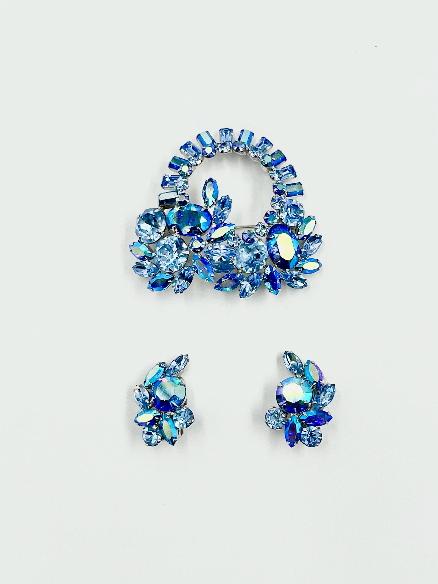 1950s Blue Crystal Brooch & Clip Earrings Set
