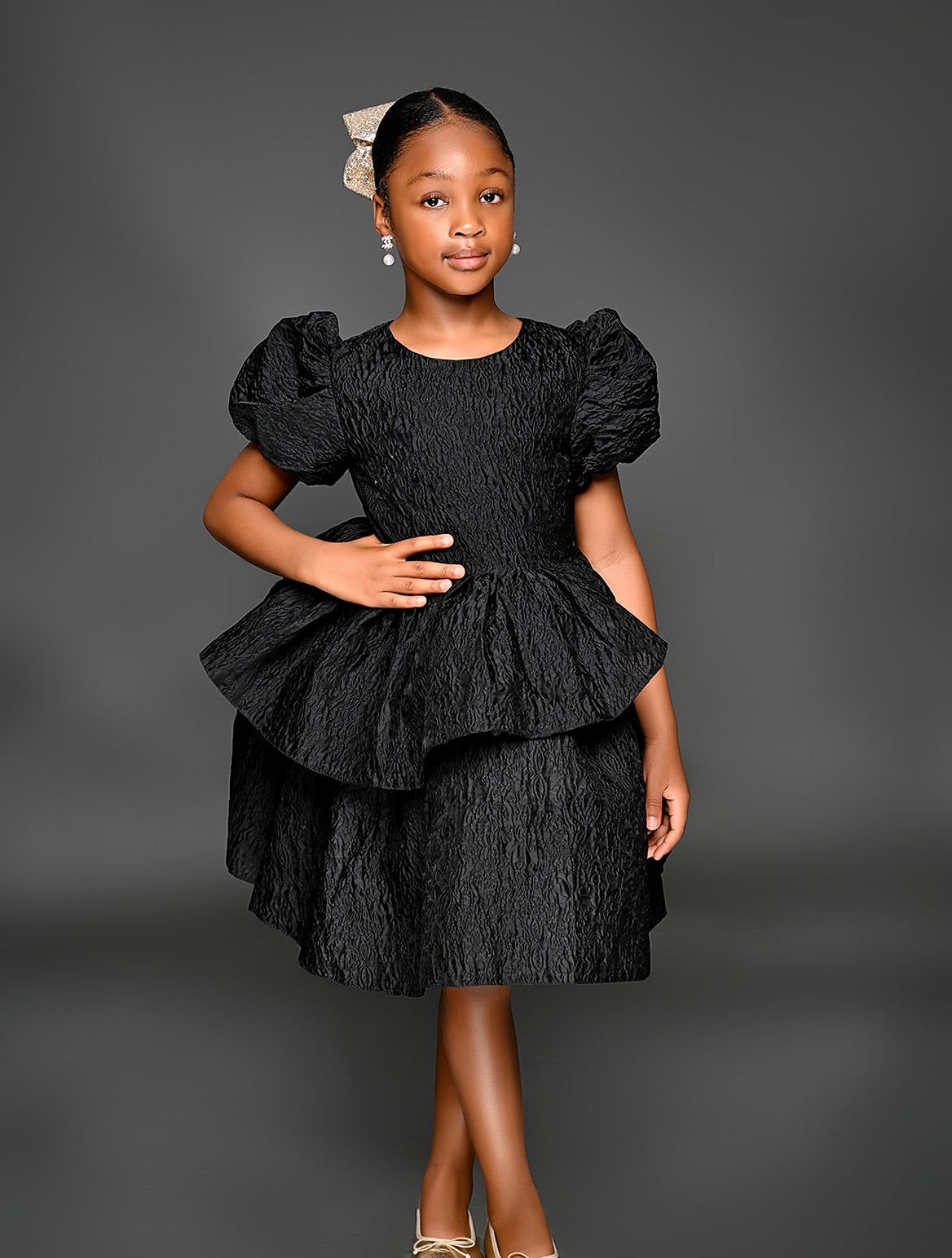 A classy and elegant black dress perfect for that special occasion. A puff sleeve dress with a voluminous puffy skirt.