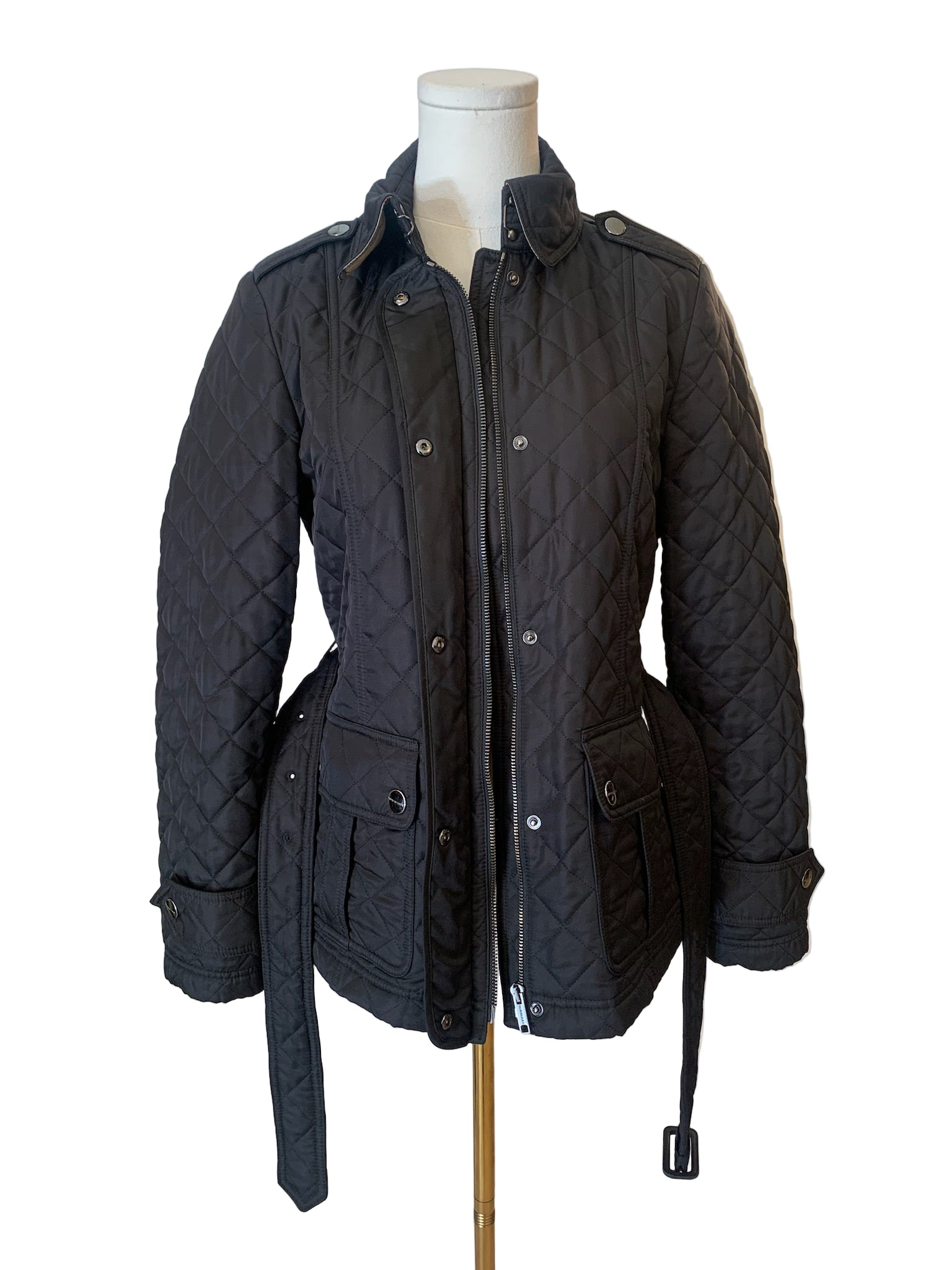 Belted jacket with front zip and button closure. Detachable belt. Double size pocket. Epaulets on shoulder.