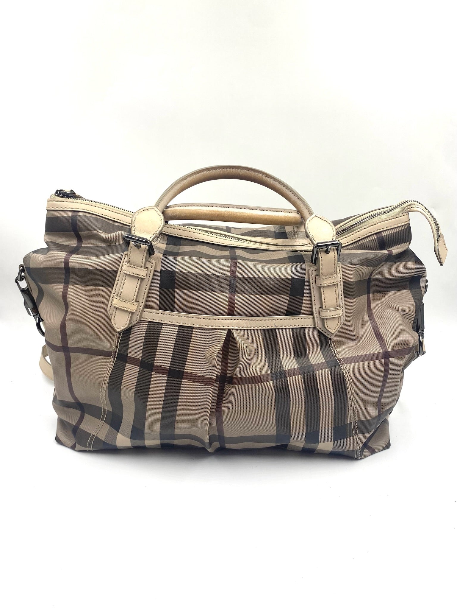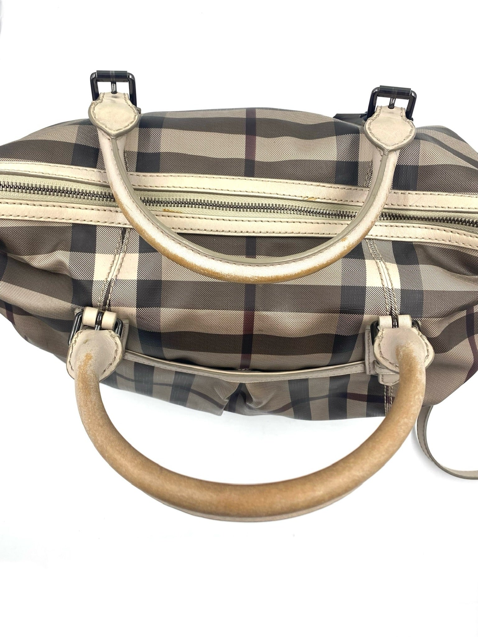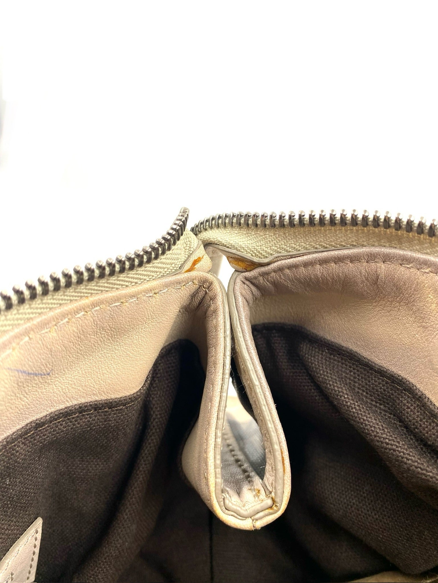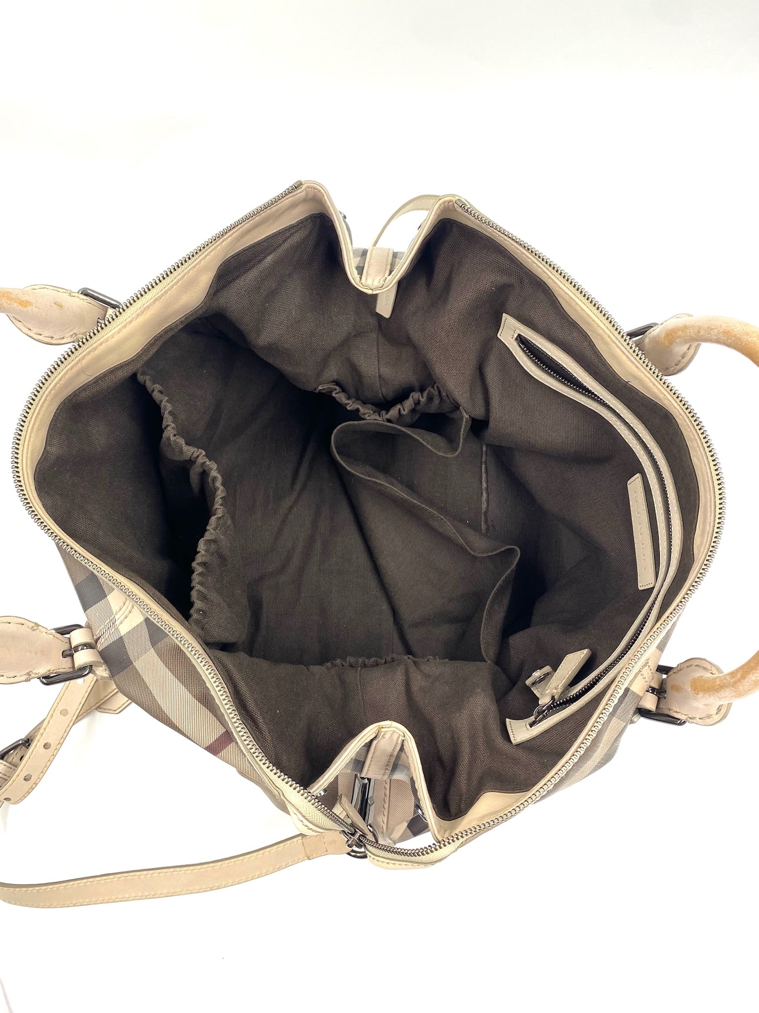 PVC Bag with top zip closure and shoulder strap. Multi pocket inside compartment and fabric lined.