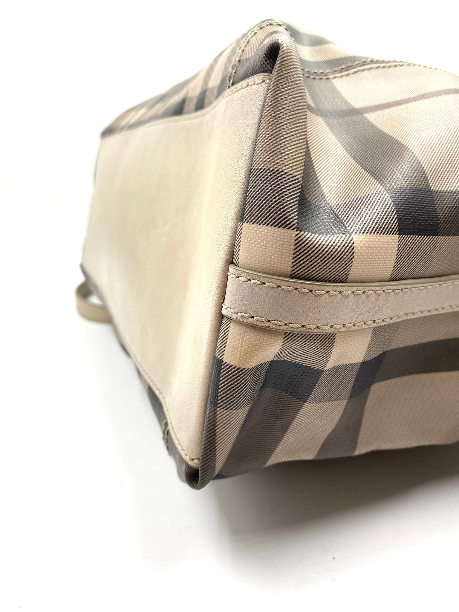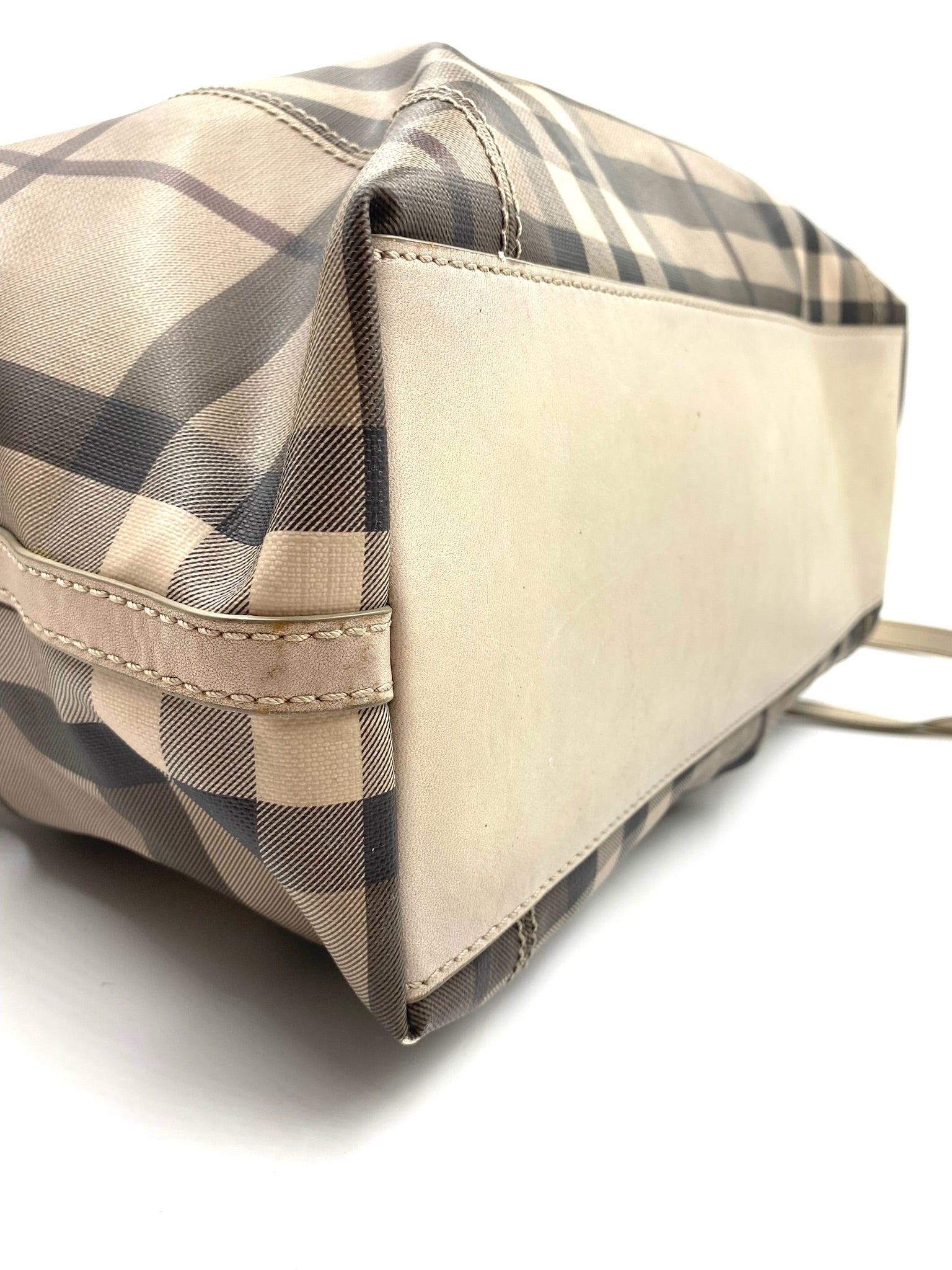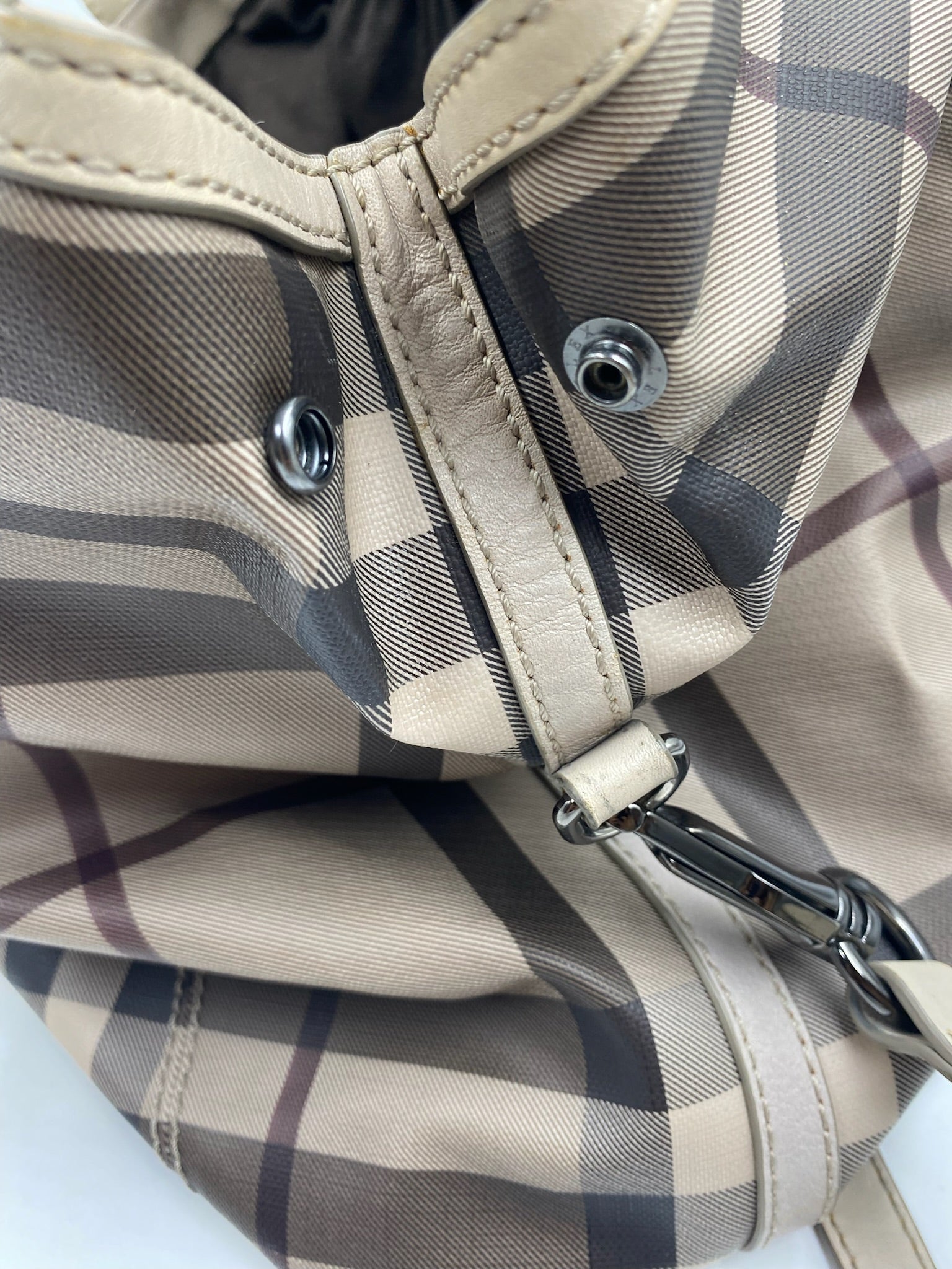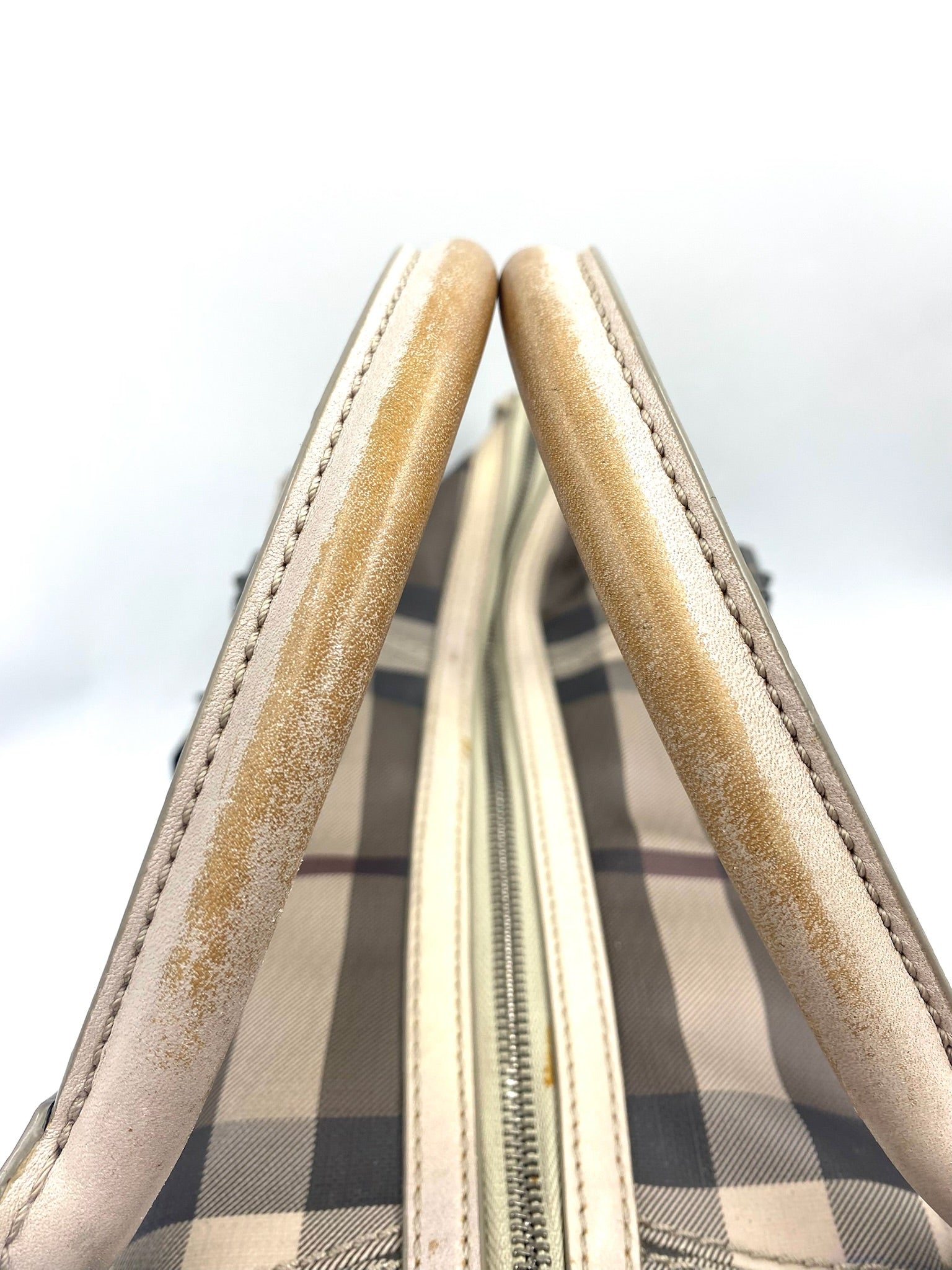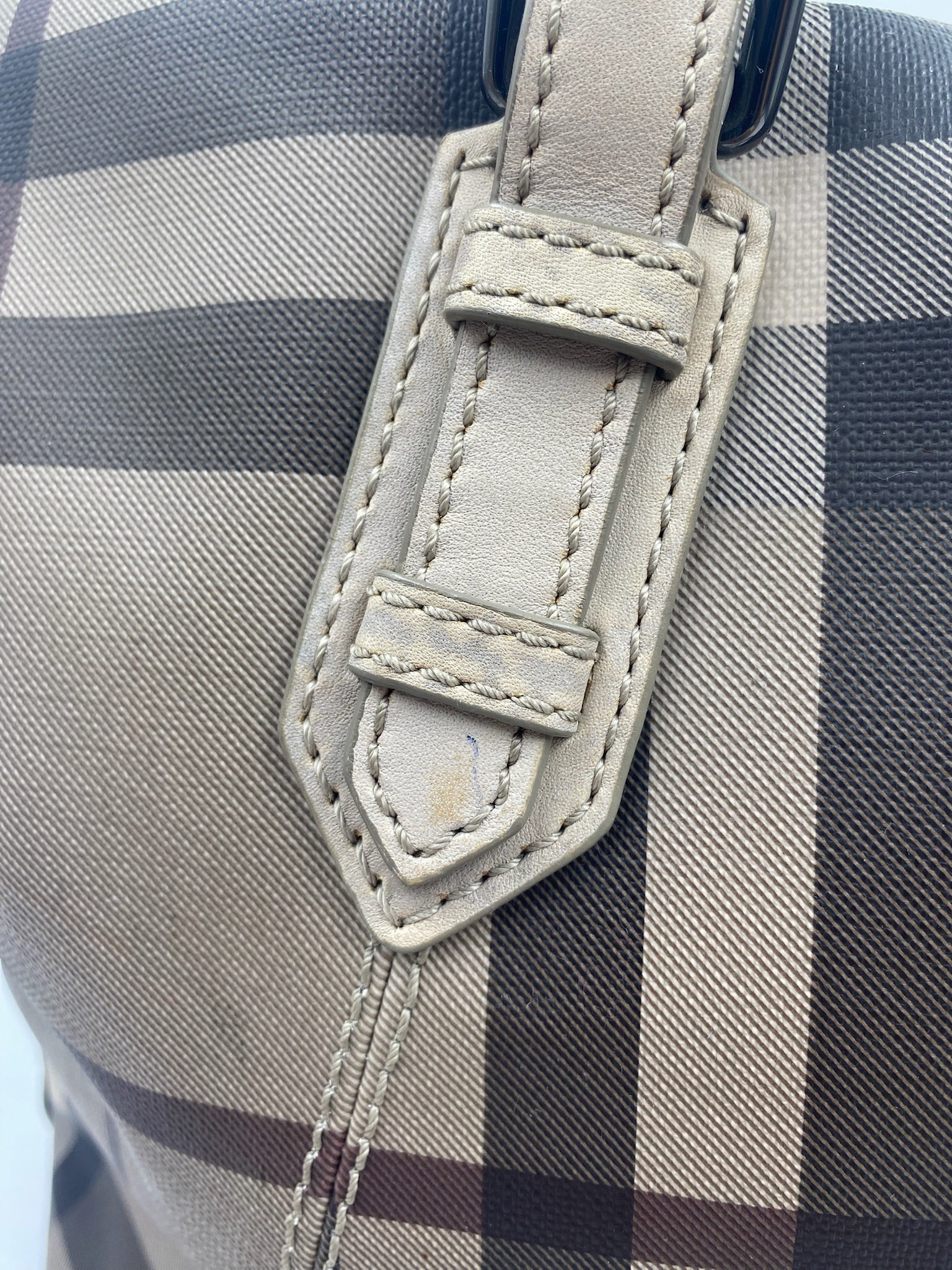 PVC Bag with top zip closure and shoulder strap. Multi pocket inside compartment and fabric lined.