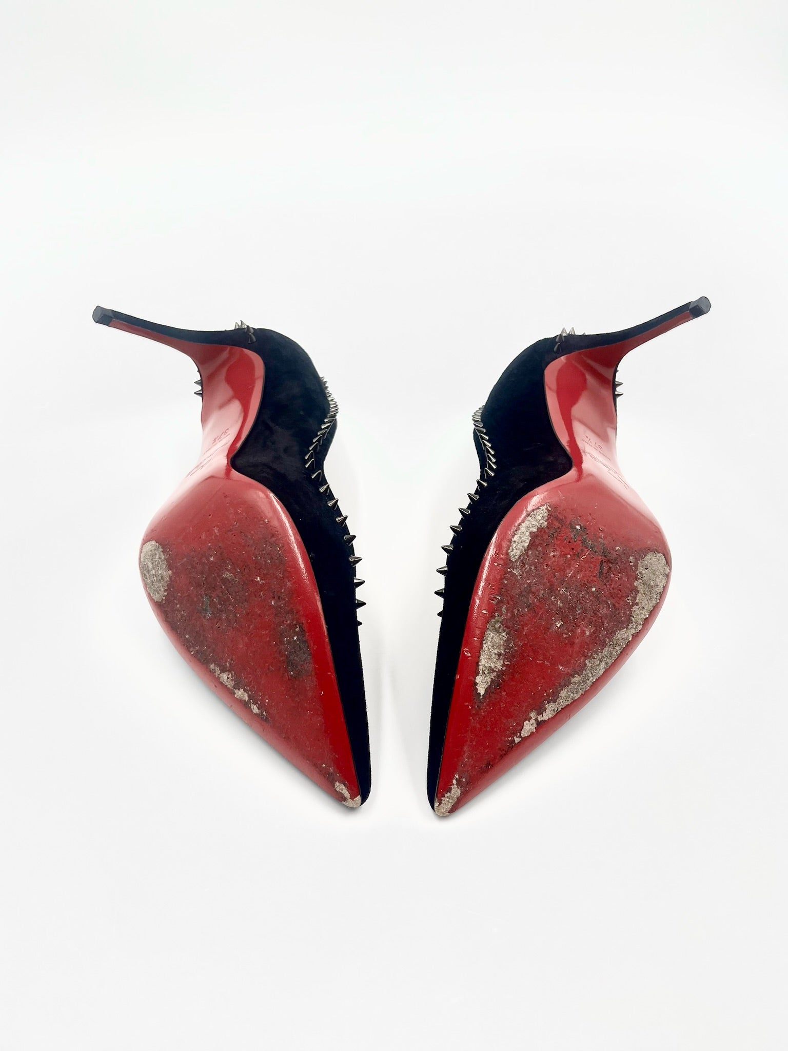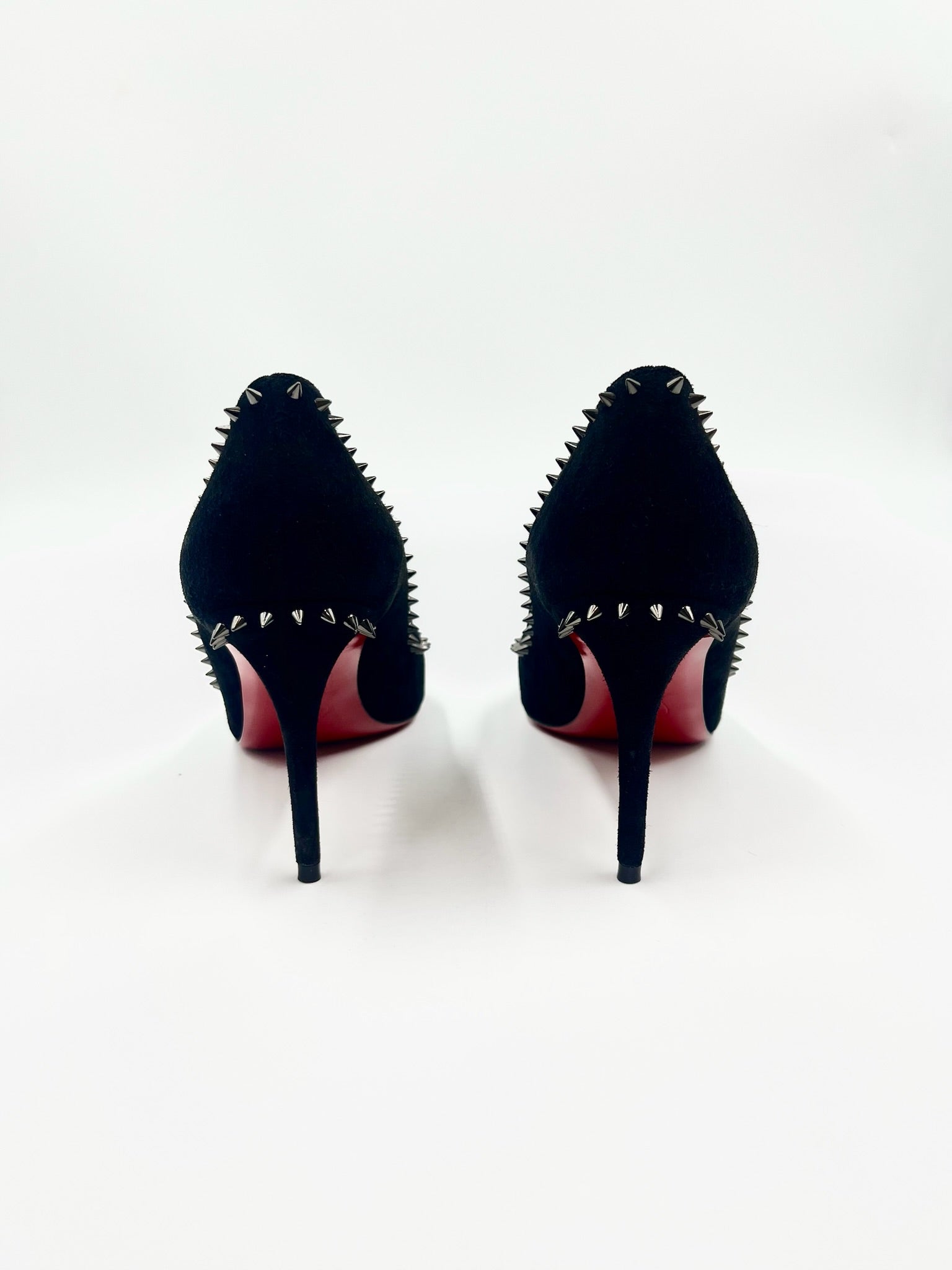 Pointed top heels with pile details. Red soles.