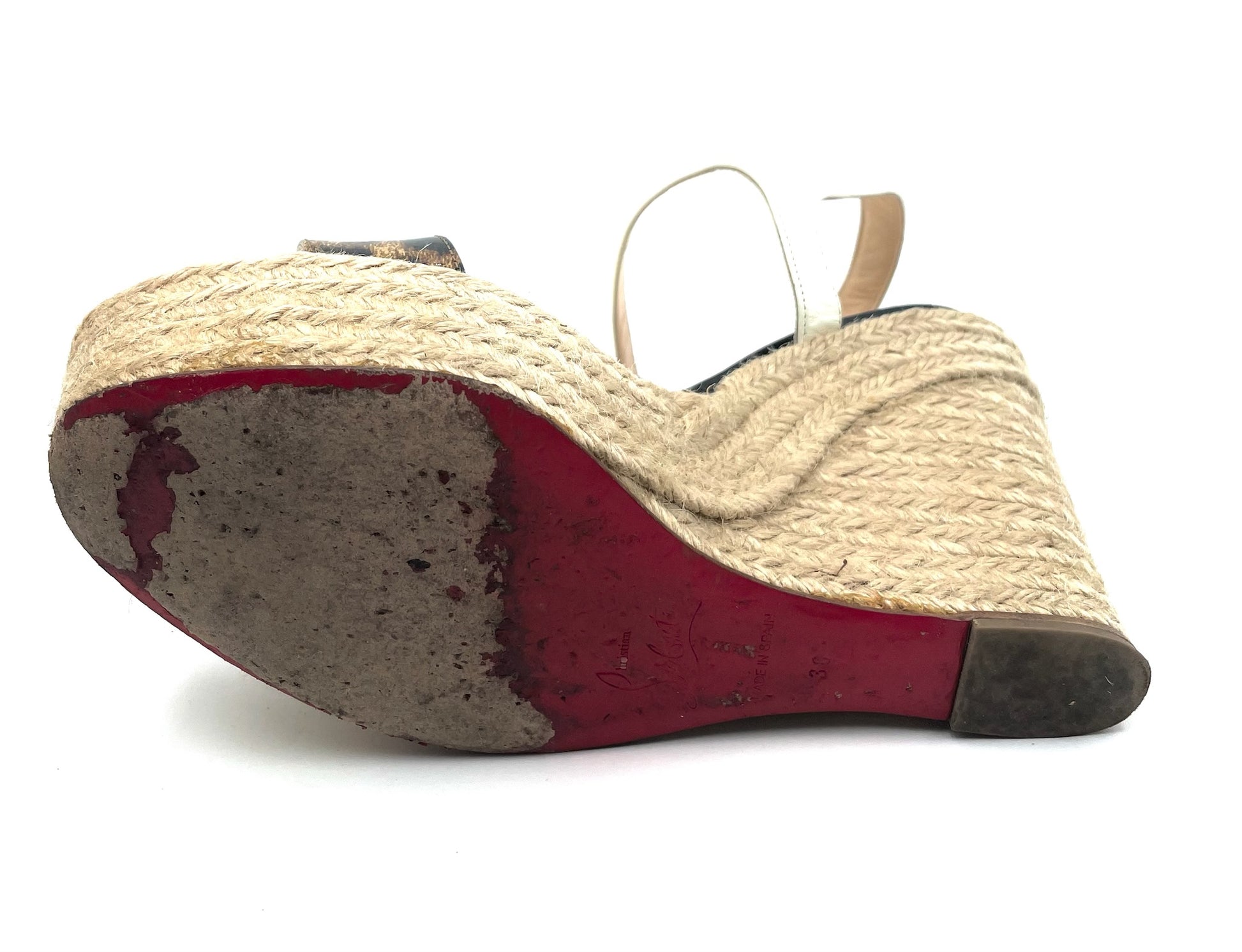 Christian Louboutin Leopard Print Wedge Espadrille Sandals Size 38