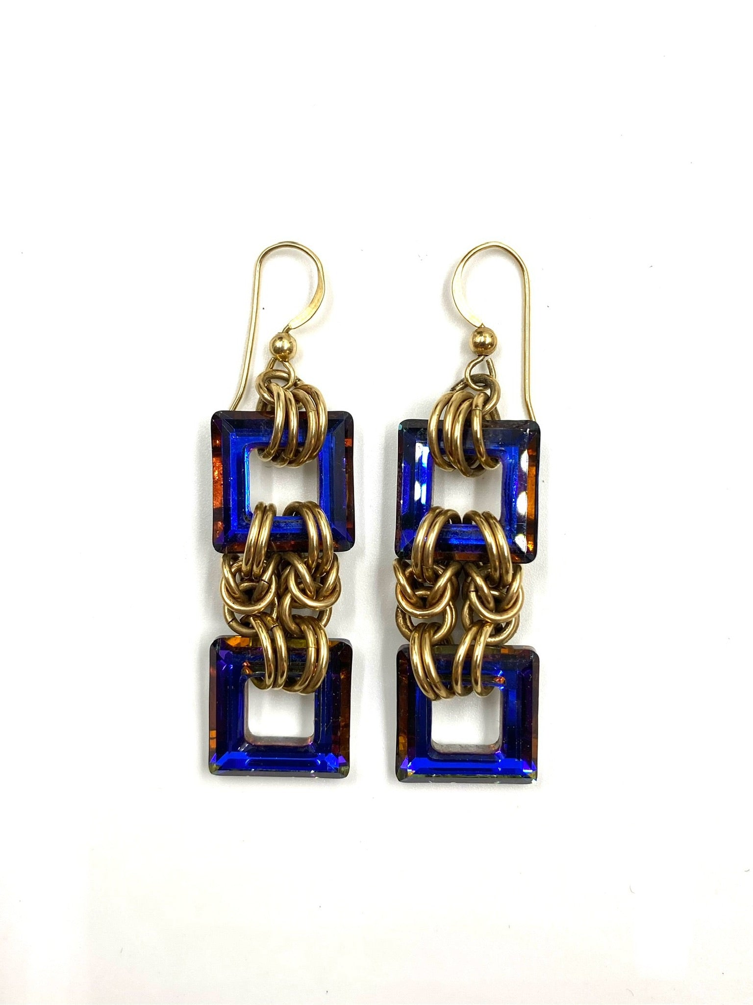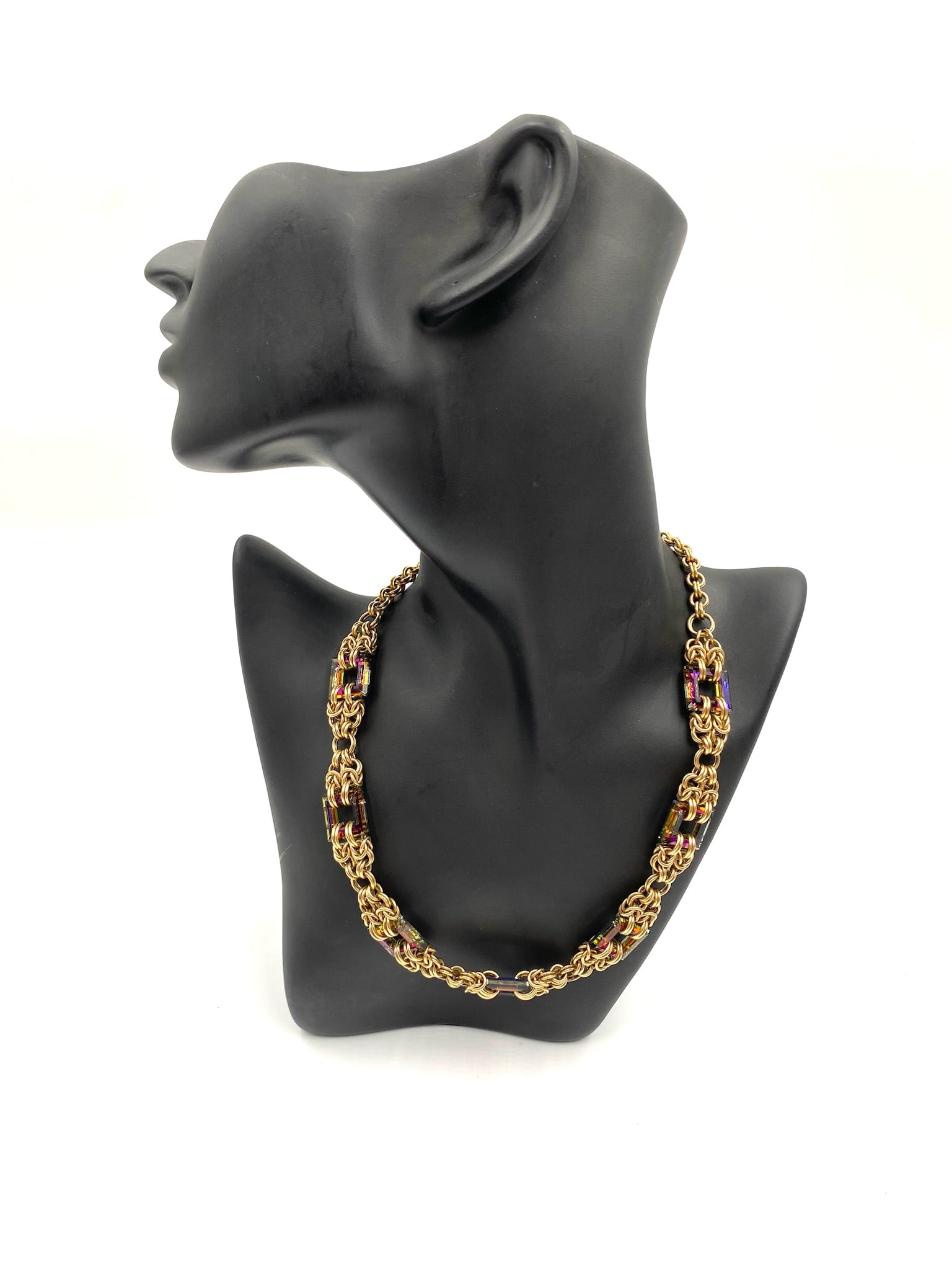Square shaped stone necklace on Byzantine chain. Gold filled.