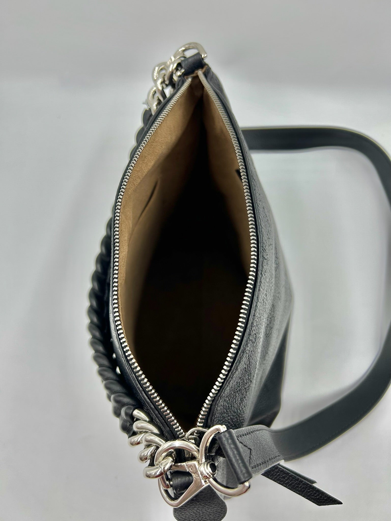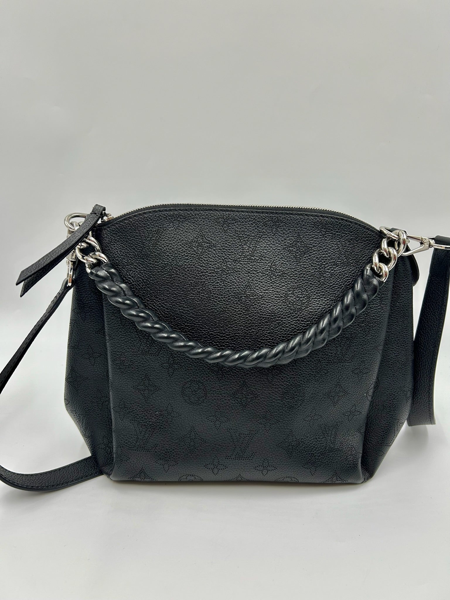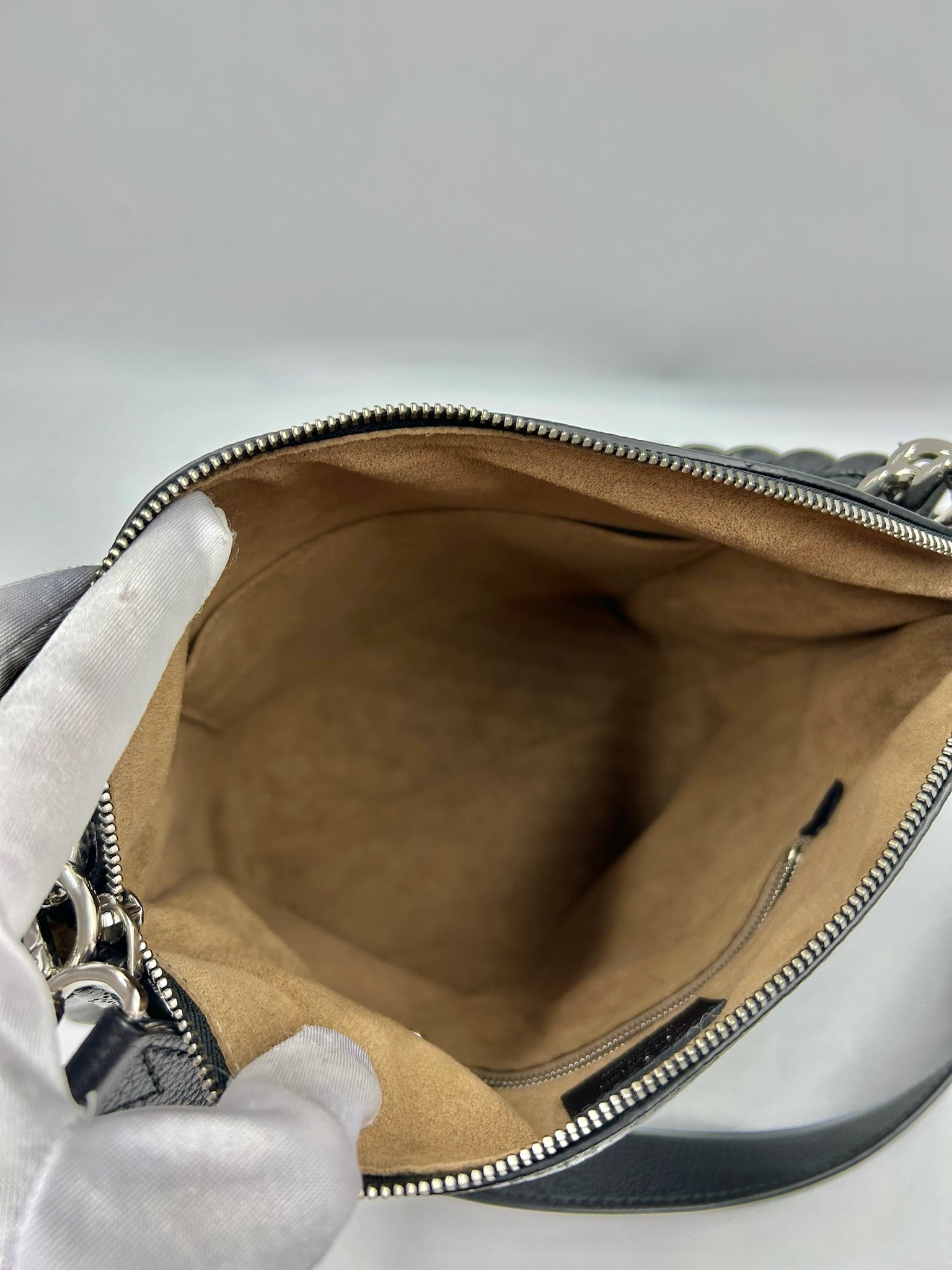 This chic tote is crafted of perforated Louis Vuitton monogram perforated calfskin leather in black. This shoulder bag features a polished silver chain top handle covered with matching smooth leather and an optional shoulder strap. The top opens to an interior of brown microfiber with zipper and patch pockets.