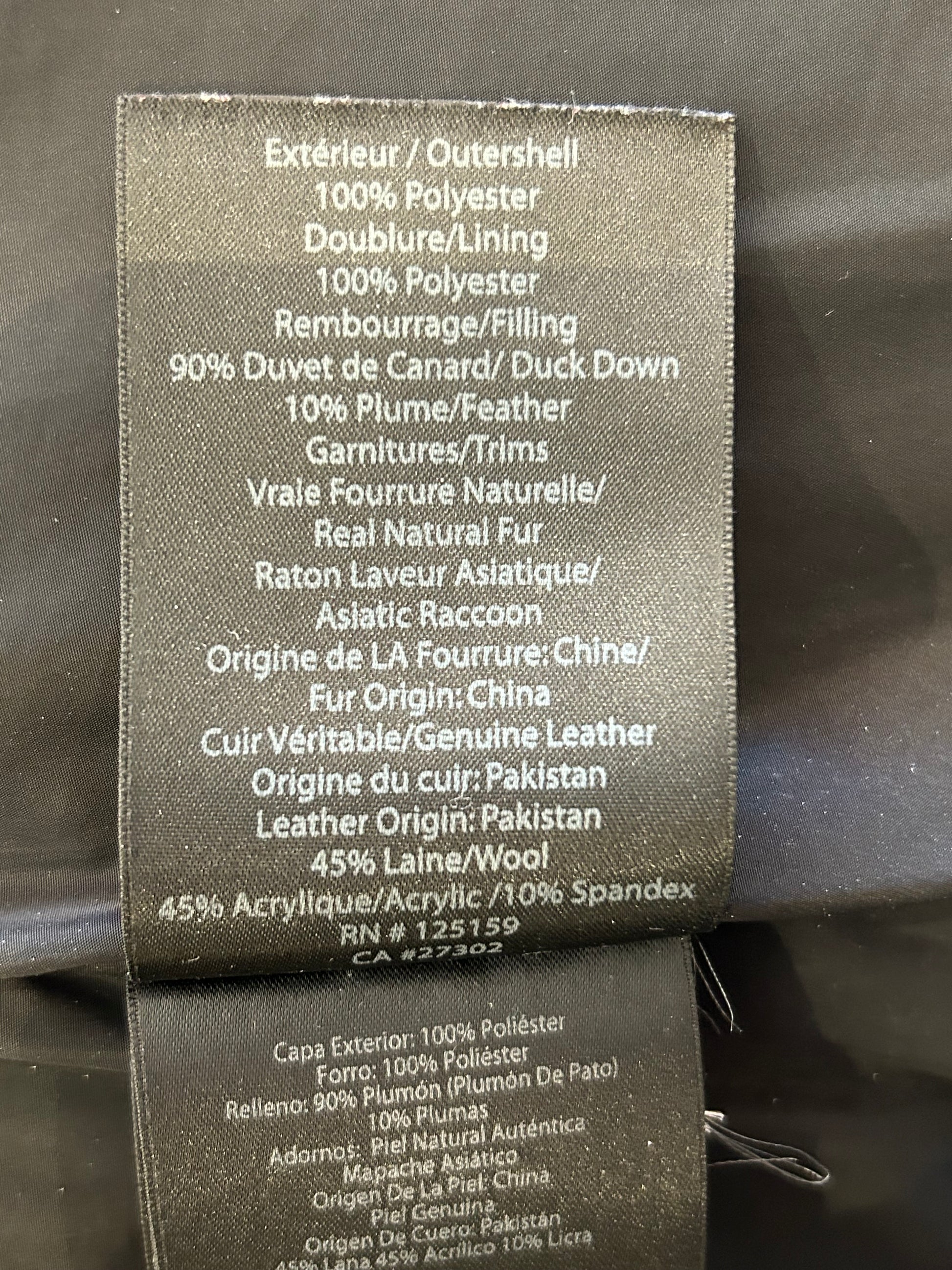 Adali-F5 by Mackage is a classic down coat for women with hooded double collar and fur. Water-repellent down-filled black coat. Inset ribbed collar with zippered partial closure. Black closures and trims. Oversize tapered hood trimmed in real natural fur asiatic raccoon. Leather-trimmed welt side pockets. Inset ribbed cuffs. Fully lined.