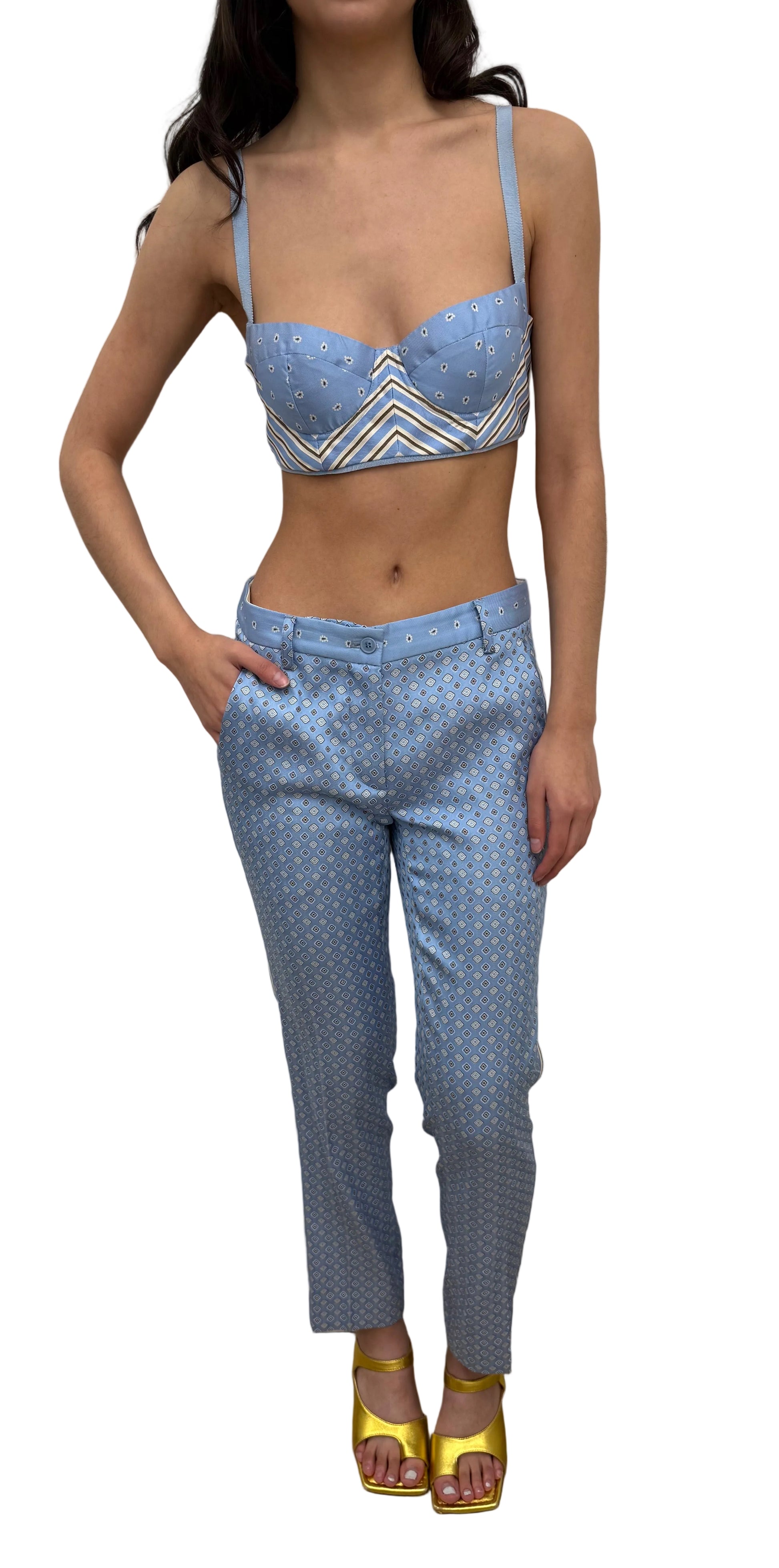 Philosophy Di Alberta Ferreti Blue Print Bralet & Trouser Set Size 2/4 US