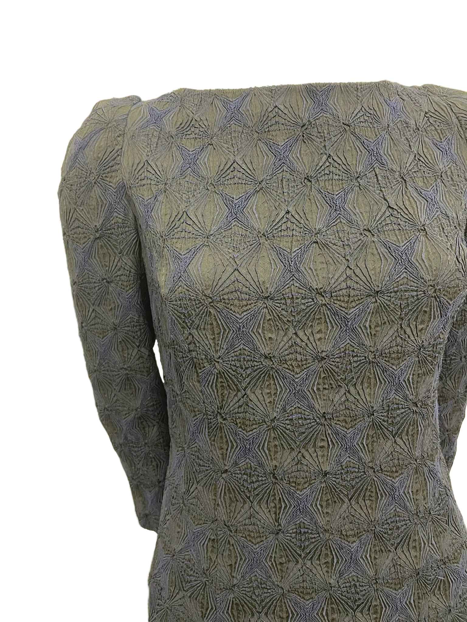 Lomg sleeve ribbed stretch dress with back zip closure.
