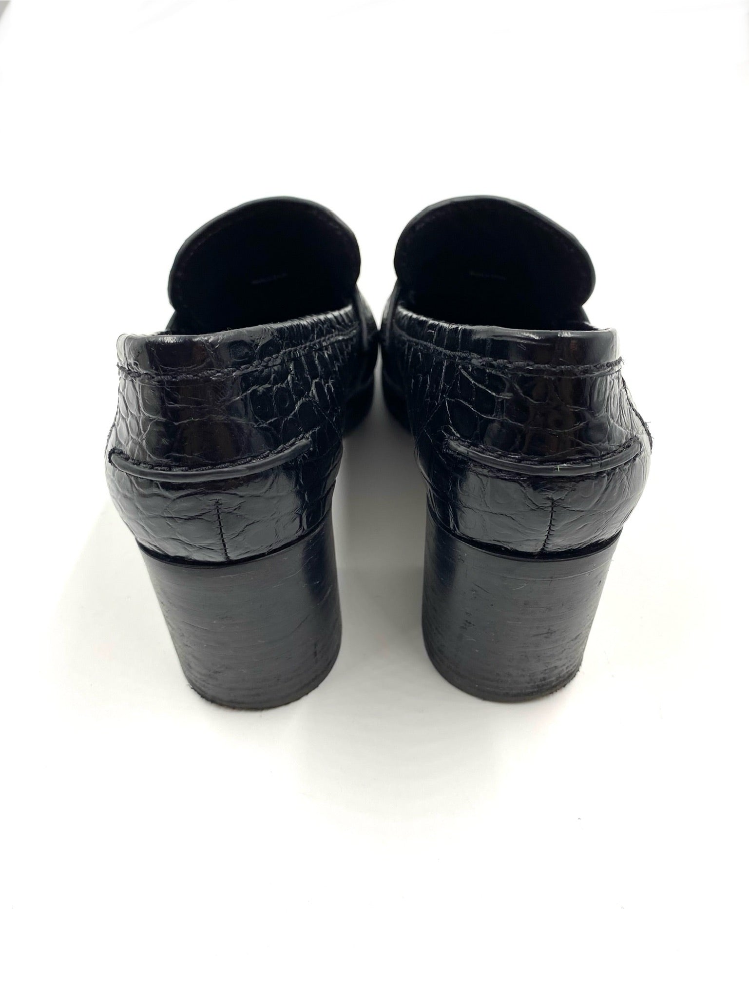 Veronica Beard Black Croc Embossed Loafers Size 8