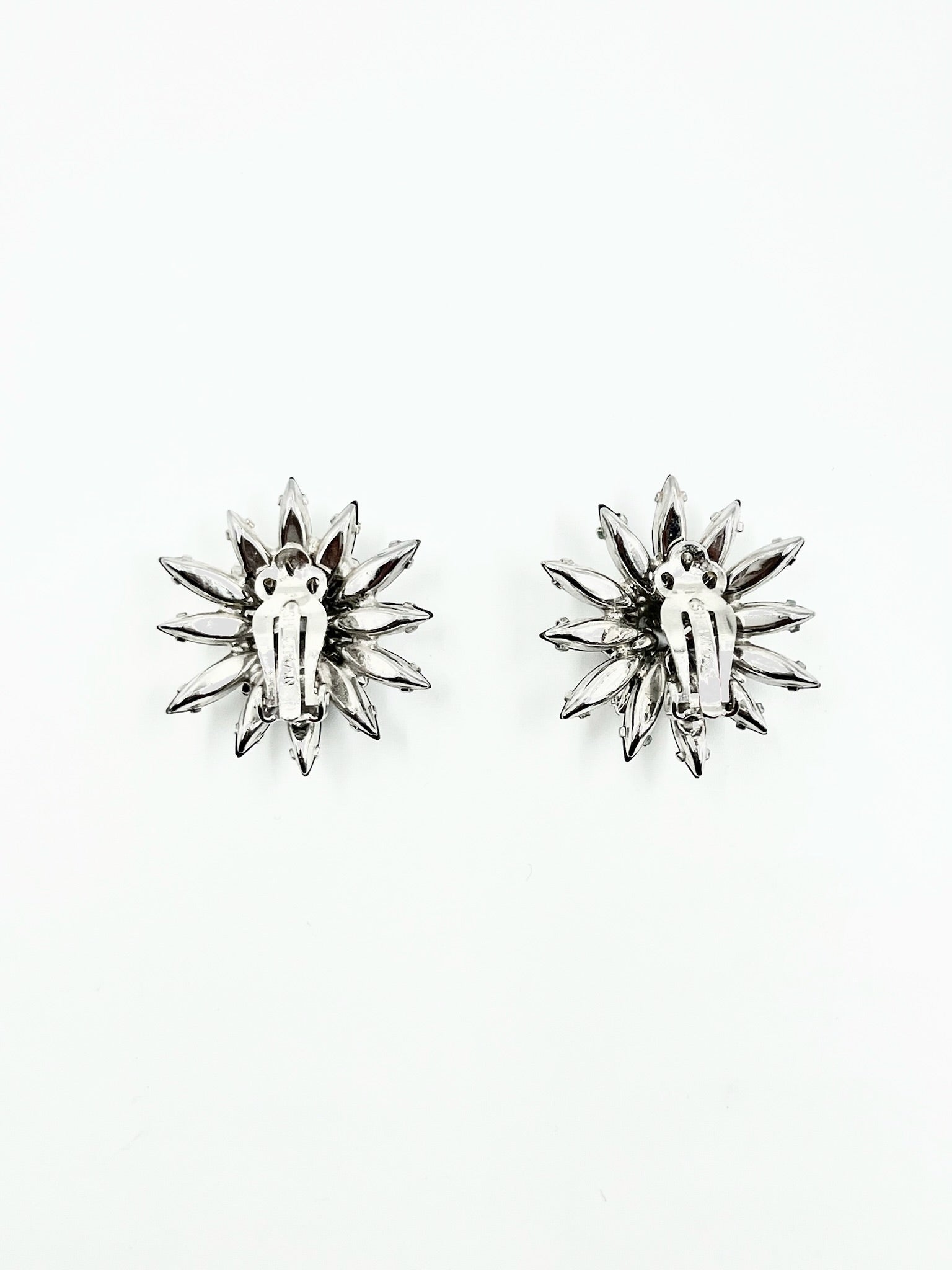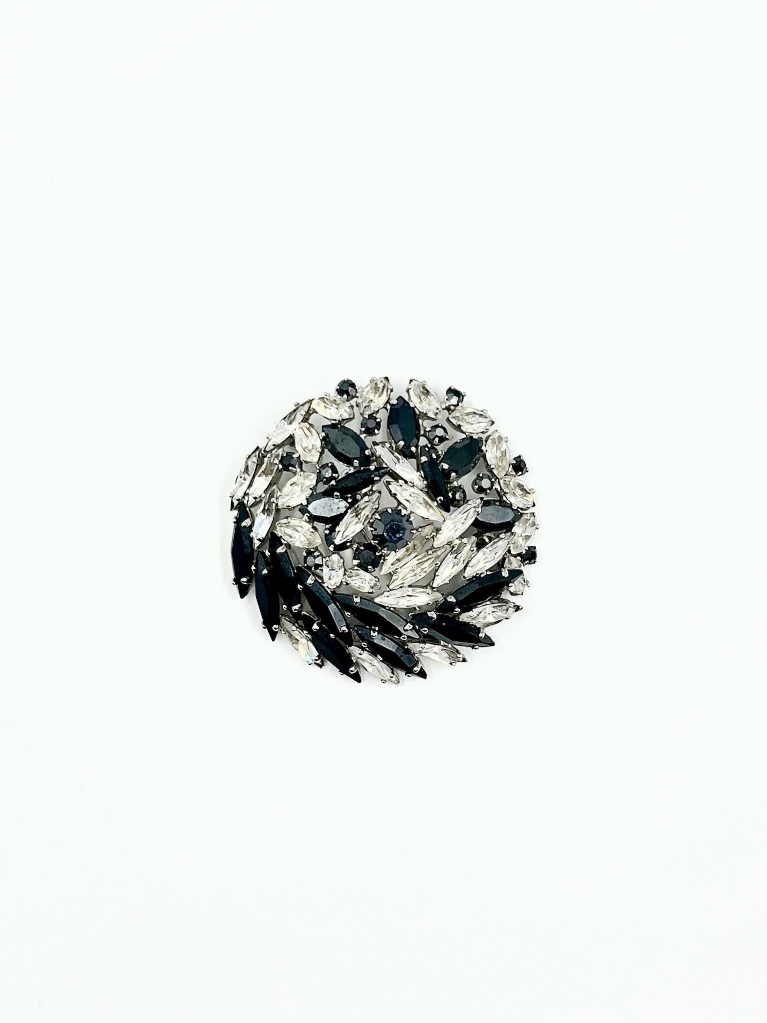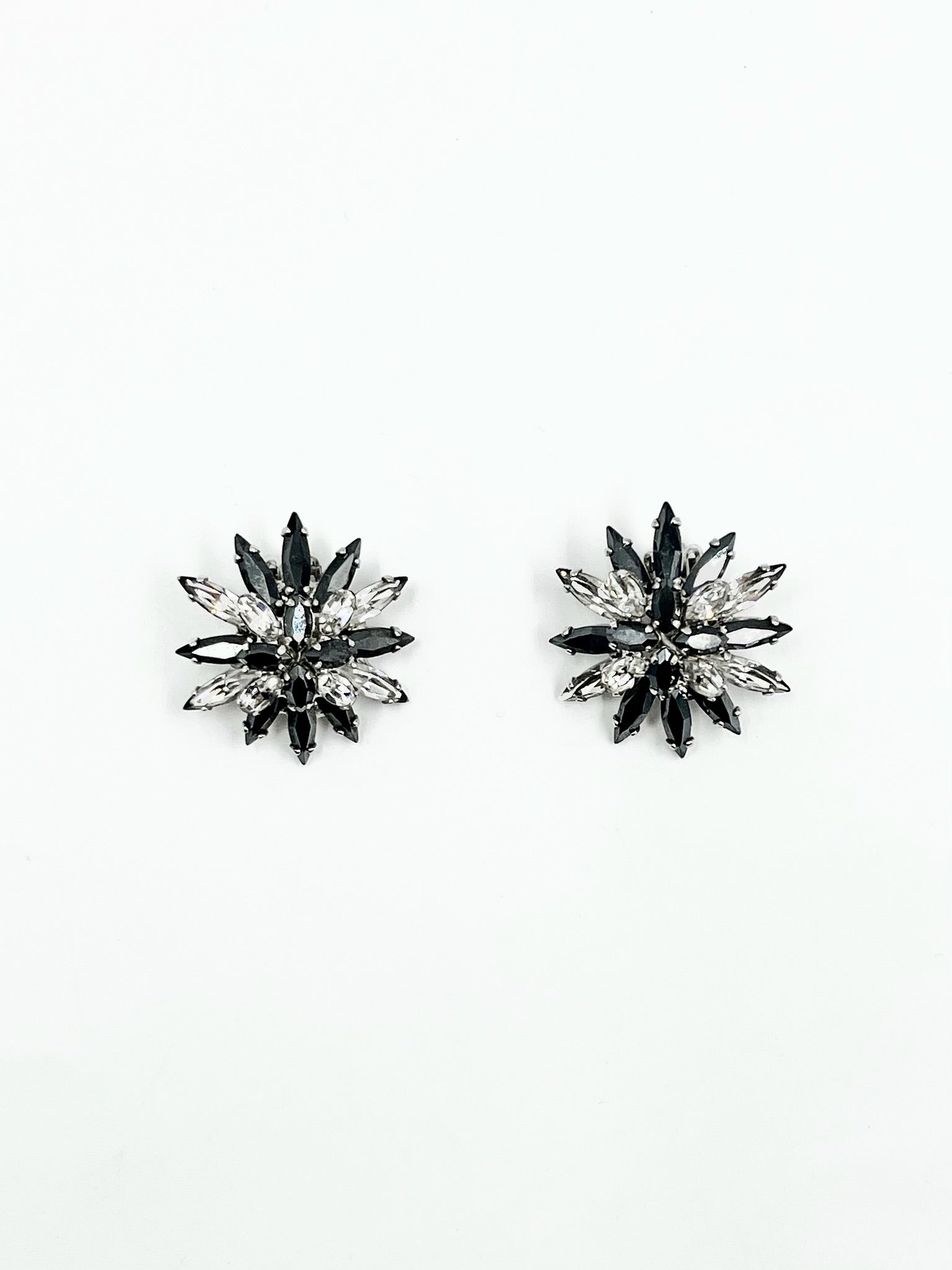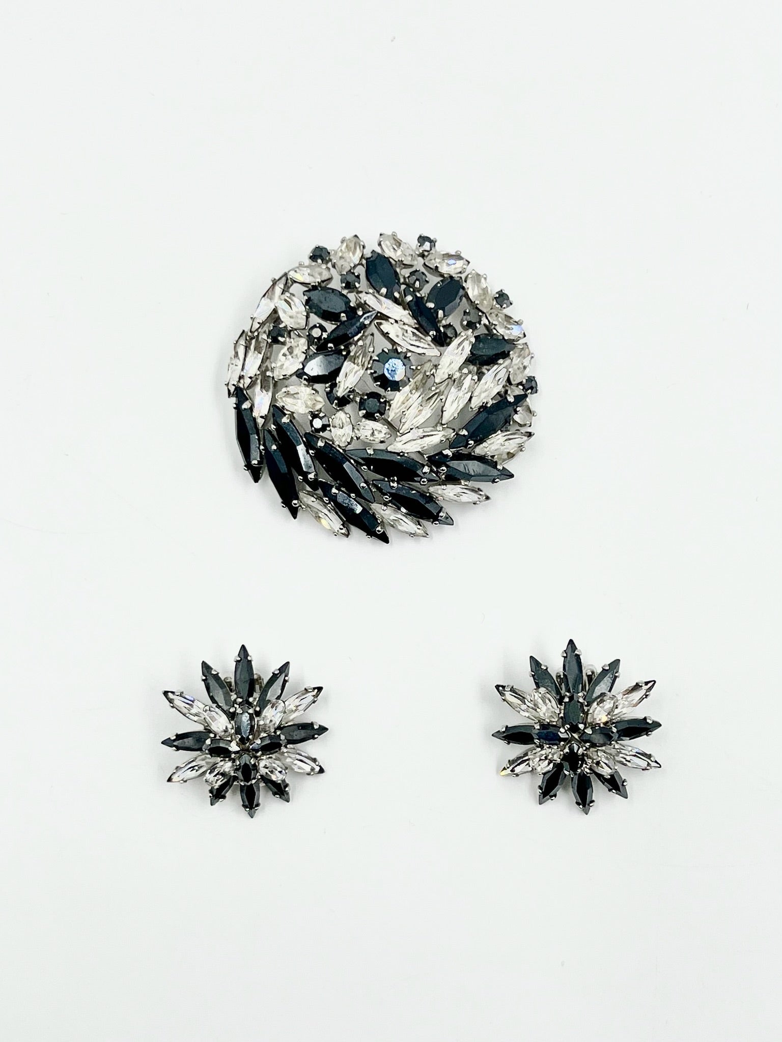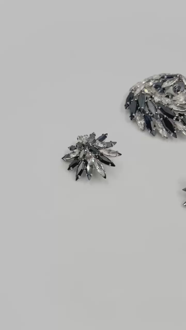 Vintage 1950s Sherman Black & Clear Marquise Swarovski Crystal Brooch & Clip Earrings Set