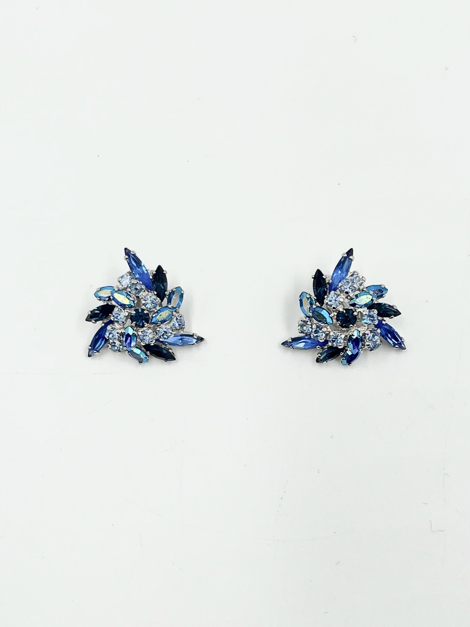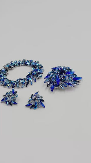 Vintage 1950s Sherman Blue Swarovski Crystal Brooch, Earring & Bracelet Set