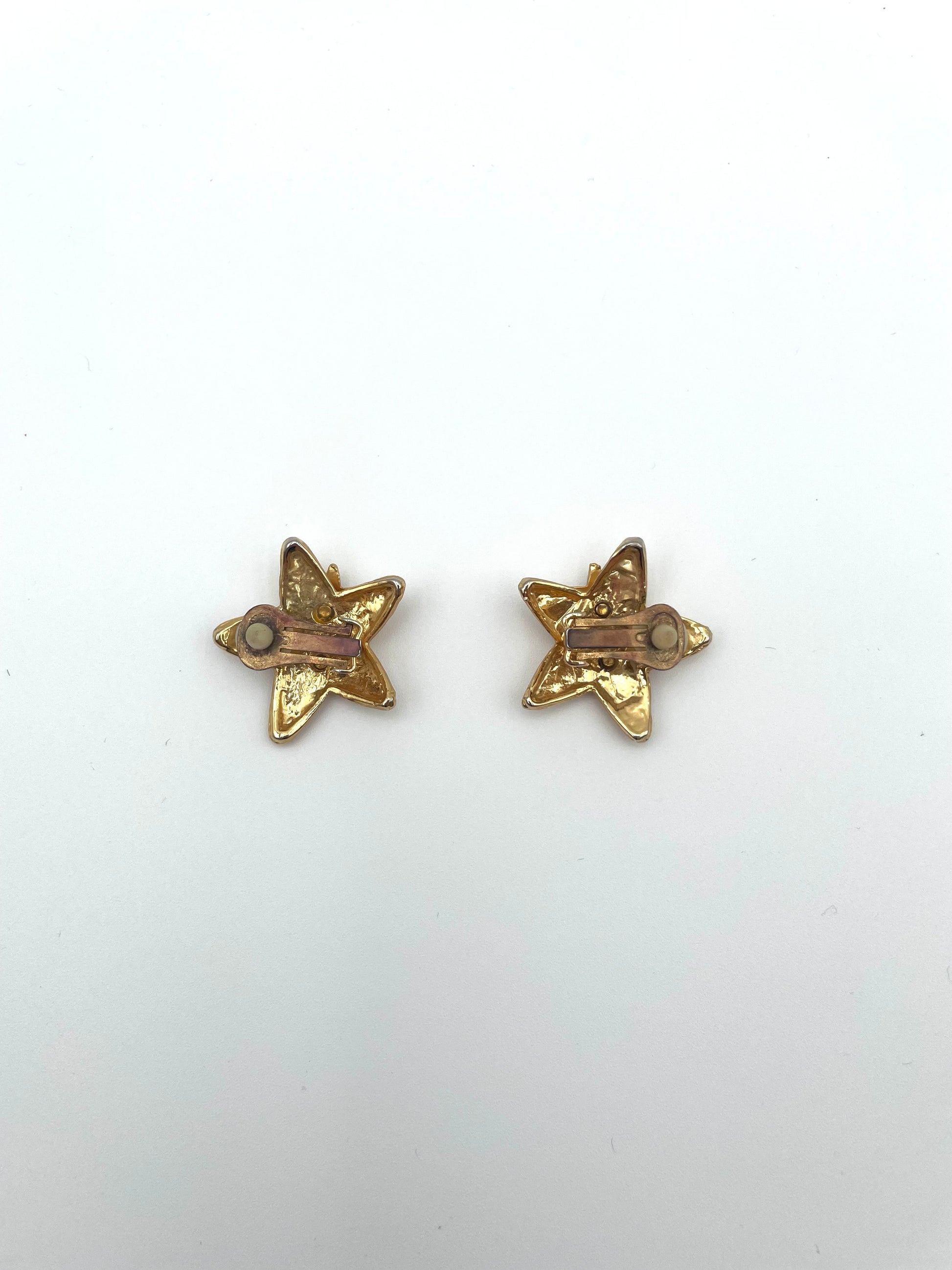 Polished gold-tone star brooch accented with crystal detailing. A bold yet classic piece perfect for elevating blazers, dresses, or outerwear.